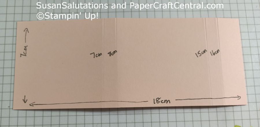 Cut a piece of designer series paper 6.5cm (2 9/16th) wide by 16cm (6 5/16ths") long Cut a piece of cardstock 7cm (2 3/4") by 18cm (7 1/8") Score the cardstock at 7cm (2 3/4"), 8cm (3 1/8th"), 15cm (5 7/8th") and 16cm (6 1/4"} Adhere the dsp to the cardstock, leaving the last 2cm (3/4")bare Score all lines, adhere the 2cm (3/4") tab to the inside of the sleeve Slide the sleeve onto the box base Decorate as desired