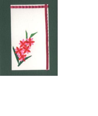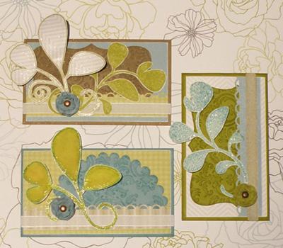 The flowers were punched along the border of the paper; thus giving me free flowers as well as a stenciled design that was used on the other 2 cards. Absolutely No Wastage :-)